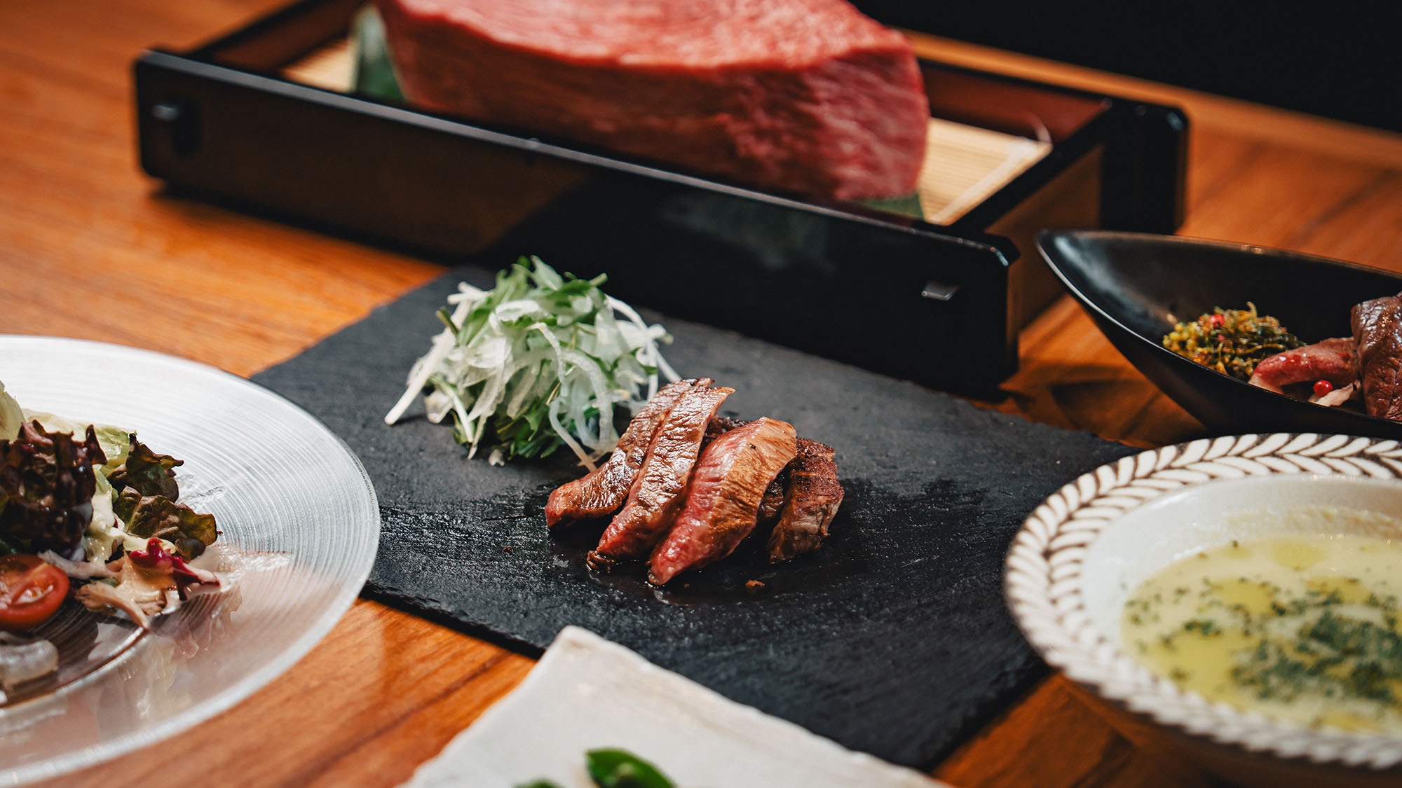 ■夕食『A5黒毛和牛 霜降肉と赤身肉のステーキコース』